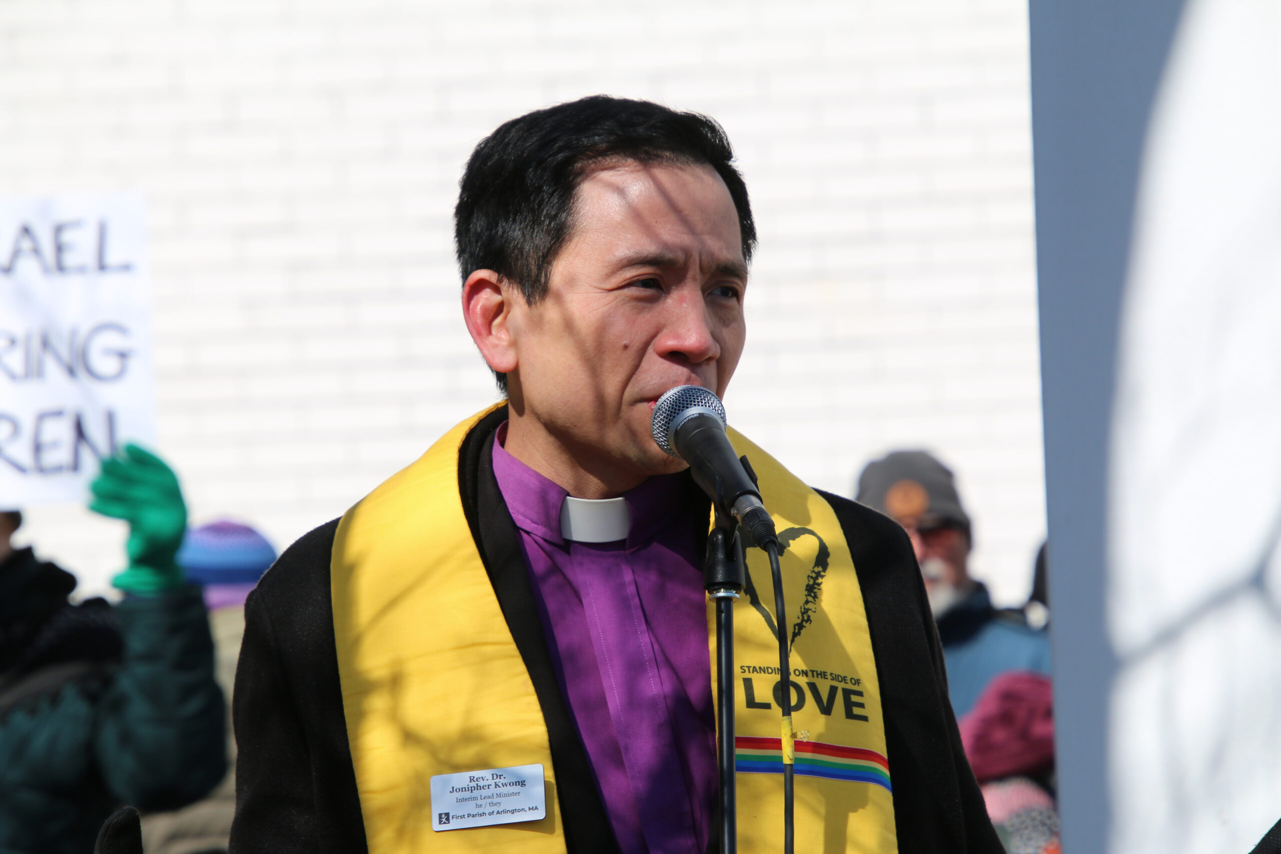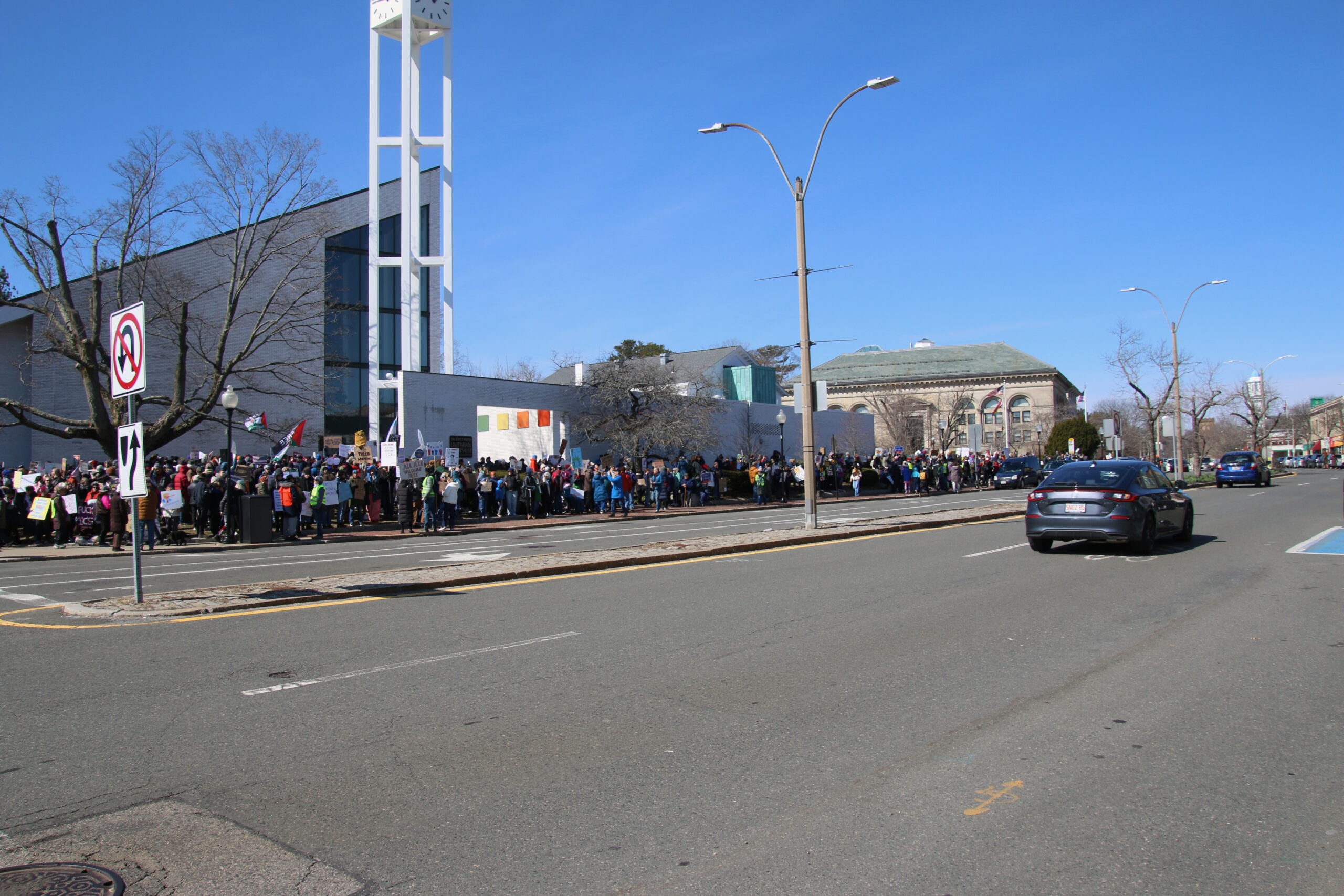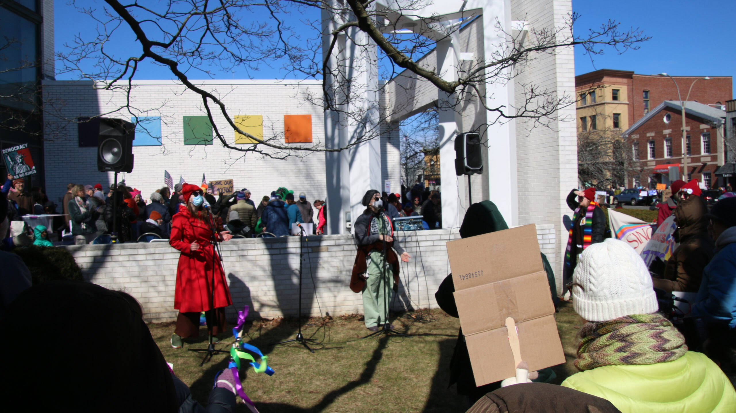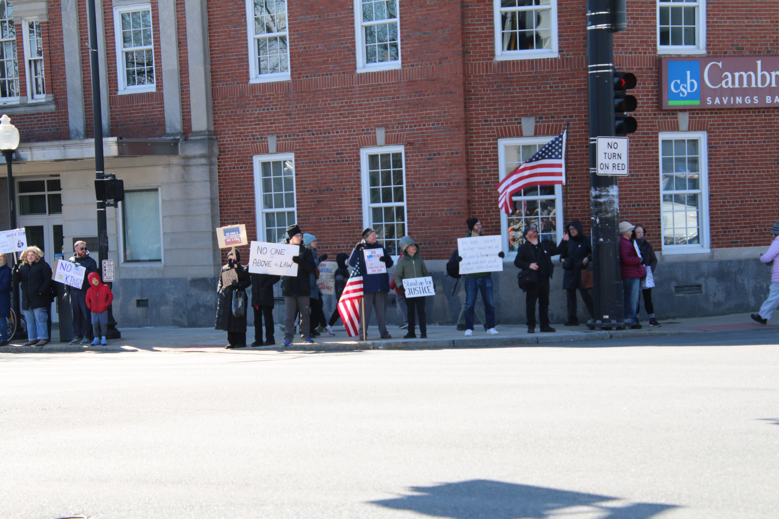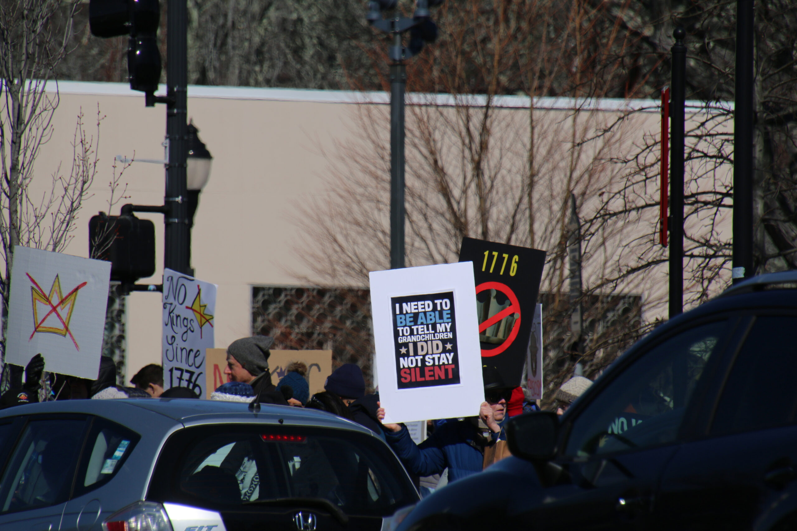 Thousands came out to the First Parish lawn this Saturday morning, March 28, for a No Kings Rally to stand up for our communities and reject the increasing authoritarian excesses and corruption of the Trump administration. According to reporting from YourArlington, an estimated 3000 people gathered peacefully on the First Parish lawn at 10:00am on Saturday morning, with no arrests or distracted driving car accidents. First Parish, led by the FP Defending Democracy Working Group, and Indivisible L.A.B. (Lexington, Arlington, Belmont) co-sponsored the rally, one of thousands of similar events across the country on Saturday. This No Kings Day of Action was the third of such national calls to gather peacefully in protest since the start of President Trump’s second term in January 2025. The rally at First Parish, along with similar gatherings sponsored by Indivisible LAB in Lexington and Bedford, were scheduled in the morning to allow for participants to attend the Boston No Kings event later in the day.
