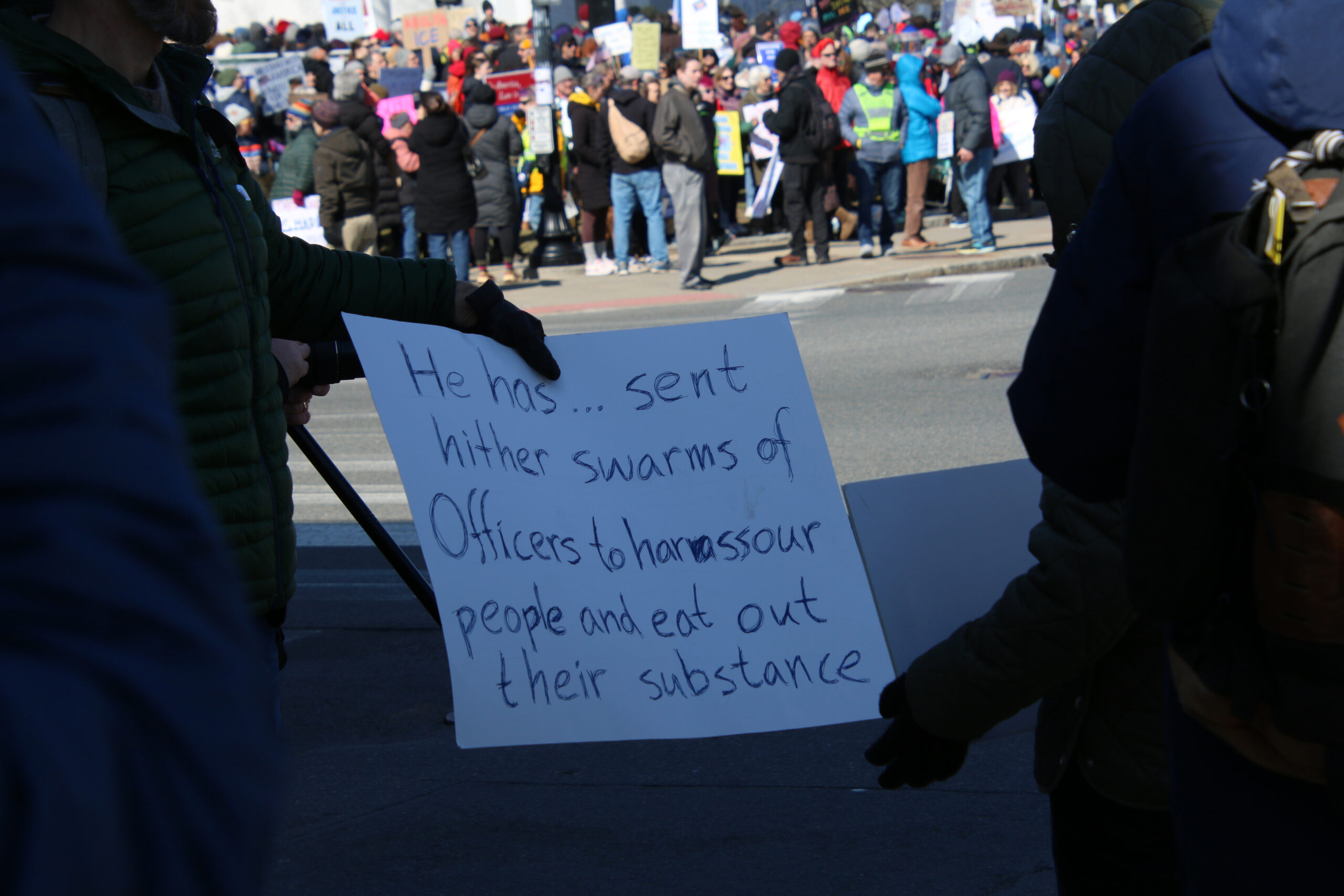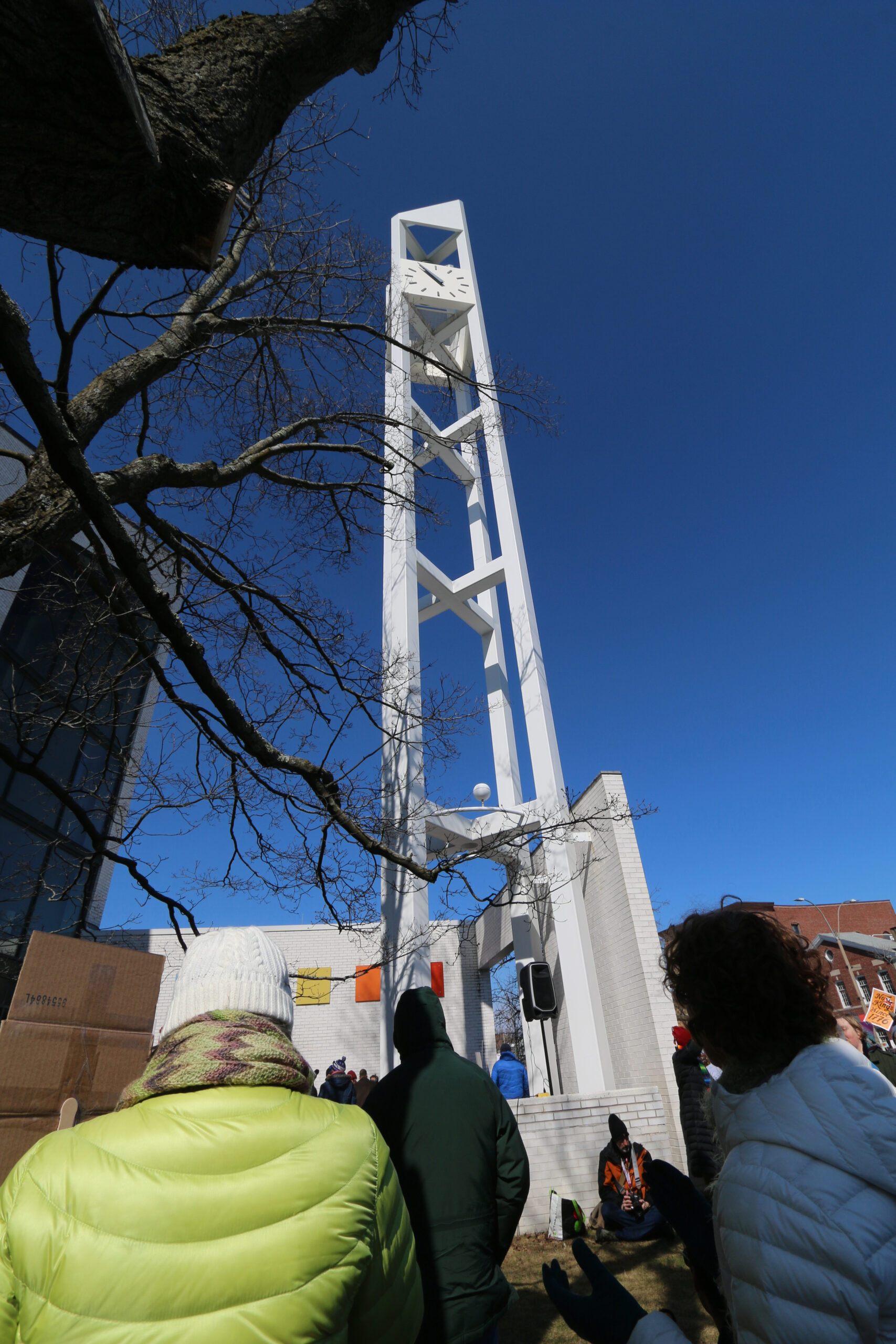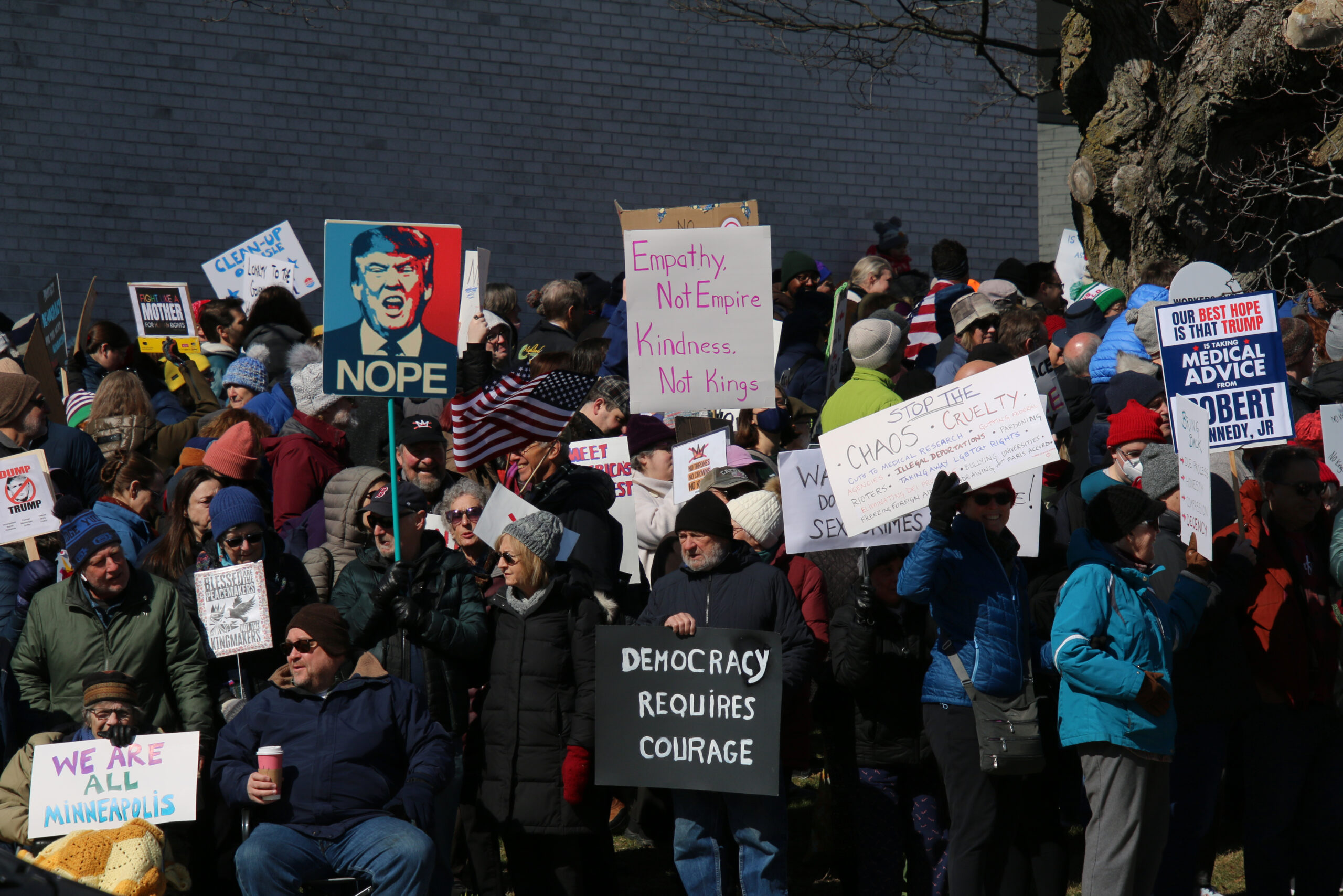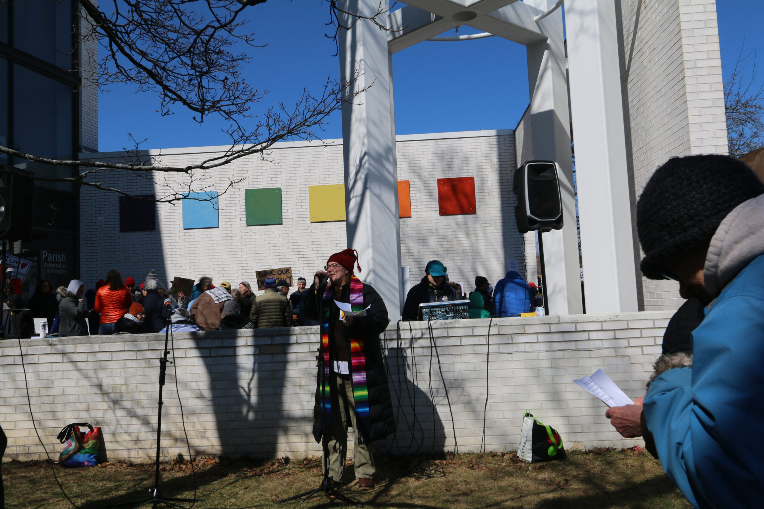Thousands came out to the First Parish lawn this Saturday morning, March 28, for a No Kings Rally to stand up for our communities and reject the increasing authoritarian excesses and corruption of the Trump administration. According to reporting from YourArlington, an estimated 3000 people gathered peacefully on the First Parish lawn at 10:00am on Saturday morning, with no arrests or distracted driving car accidents. First Parish, led by the FP Defending Democracy Working Group, and Indivisible L.A.B. (Lexington, Arlington, Belmont) co-sponsored the rally, one of thousands of similar events across the country on Saturday. This No Kings Day of Action was the third of such national calls to gather peacefully in protest since the start of President Trump’s second term in January 2025. The rally at First Parish, along with similar gatherings sponsored by Indivisible LAB in Lexington and Bedford, were scheduled in the morning to allow for participants to attend the Boston No Kings event later in the day.